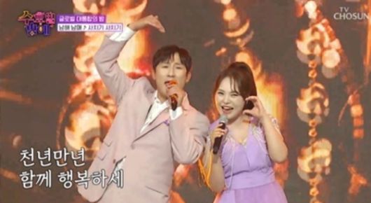 미스김과 나상도의 완벽한 가창력과 리듬감은 무대의 흥을 가득 돋웠다. 커다란 하트까지 만들어보이는 두 사람의 끼와 케미에 무대를 마치자마자 객석에서는 “결혼해”라는 요청이 쏟아졌다. 이를 들은 김희재는 “두 분이 결혼하면 3억 (원을) 내겠다”고 장담할 정도였다. 이에 안성훈은 “3억100만원”을 불렀고, 나영은 “집을 사주겠다”고 나섰다. 객석에 있던 한 팬마저도 “5억 (원)”을 외쳤다.