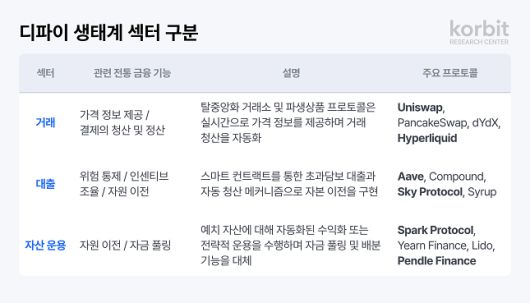 코빗 보고서 내 디파이 생태계 섹터 구분. /그래픽=코빗 제공 |