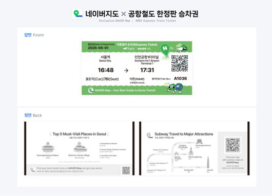 24일 네이버에 따르면 회사는 공항철도와 협업해 한정판 승차권을 선보였다. 인천공항과 서울역을 무정차로 연결하는 공항철도 직통열차의 한정판 승차권은 서울역과 인천공항 1·2터미널에서 발권할 수 있다. 뒷면에는 서울의 주요 관광지, 관광지로의 지하철 이동 방법 등에 대한 안내를 담아 외국인이 관광에 도움을 받을 수 있도록 한 것이 특징이다.