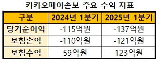 카카오페이손보가 다양한 상품을 선보이며 외형 성장에 나서고 있지만, 흑자 전환 시점은 아직 요원하다. 올해 1분기 말 기준 카카오페이손보는 137억원의 적자를 기록해 전년 동기 대비 21억원 적자 폭이 확대됐다.