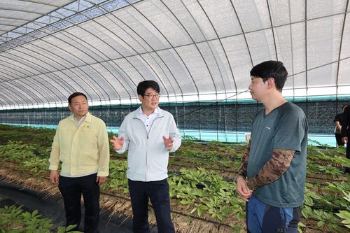 권재한 농진청장은 이날 전북 김제시 인삼 재배 농가를 찾아 이중구조 하우스 시설을 점검했다.