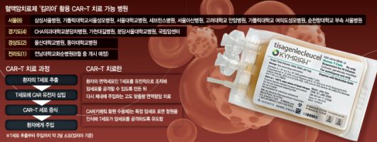 24일 의료계 등에 따르면 국내에서 CAR-T킴리아 치료가 가능한 병원은 전국에 14곳 뿐으로 그나마 12곳이 수도권에 몰려있는 것으로 나타났다.