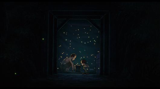 4살짜리 여동생 세쓰코를 업고 먼저 몸을 피했던 세이타는 온몸이 불탄 채 붕대로 싸인 엄마를 마주했다. 밖에선 영문을 모르는 동생이 서성거렸다. 세이타는 눈물을 흘리지 않았다. 아빠는 군대에 동원됐고, 기댈 사람이 없던 남매는 인적 끊긴 산속 방공호로 거처를 옮겼다. 남매가 잠들자 반딧불이가 찾아와 불을 밝혔다. 이튿날 죽은 반딧불이들을 위해 구덩이를 파던 세쓰코는 오빠에게 말한다. “엄마도 무덤에 계시겠지? 고모한테 들었어.” 고개를 숙이고 슬픔을 감추는 오빠에게 세쓰코는 울며 묻는다. “왜 반딧불이는 그렇게 빨리 죽어?” 그리고 얼마 지나지 않아 영양실조에 걸린 세쓰코마저 숨졌다. 마치 너무 짧게 빛을 내고 죽는 반딧불이처럼. 세이타는 동생이 그렇게 좋아하던 사탕 상자를 품에 넣어주고 자신의 손으로 화장한다.