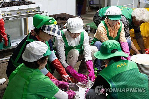 (서울=연합뉴스) 홍해인 기자 = 김혜경 여사가 24일 집중호우 피해를 입은 경기도 가평군 북면 백둔리 마을회관에서 자원봉사를 하고 있다. 2025.7.24 [대통령실 제공. 재판매 및 DB 금지]