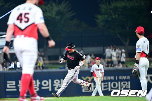 [OSEN=광주, 최규한 기자] 24일 광주-기아 챔피언스필드에서 ‘2025 신한 SOL Bank KBO리그’ KIA 타이거즈와 LG 트윈스의 경기가 열렸다. 홈팀 KIA는 양현종, 방문팀 LG는 손주영을 선발로 내세웠다. 8회초 무사 2, 3루 상황 LG 김현수가 달아나는 우중간 스리런포를 날리고 그라운드를 돌고 있다. 2025.07.24 / dreamer@osen.co.kr