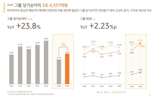 최대 계열사인 KB국민은행은 2분기 순이익(1조1612억원)이 전년 동기(1조1164억원)보다 4.0% 늘었다. KB라이프생명(1021억원)은 12.8%, KB자산운용(558억원)은 267.1% 증가했다.