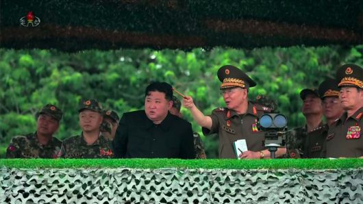 [서울=뉴시스] 조선중앙TV가 김정은 북한 국무위원장이 지난 23일 조선인민군 대연합부대 포병구분대 사격 훈련 경기를 참관했다고 24일 보도했다. (사진=조선중앙TV 캡처) 2025.07.24. photo@newsis.com *재판매 및 DB 금지