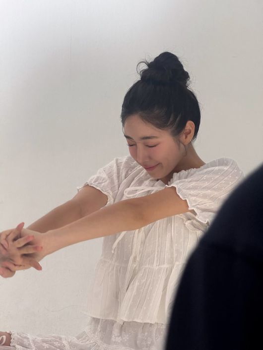 다른 사진에는 안지현이 앉아서 여유롭게 기지개를 피며 눈을 감는 모습도 담겼다.