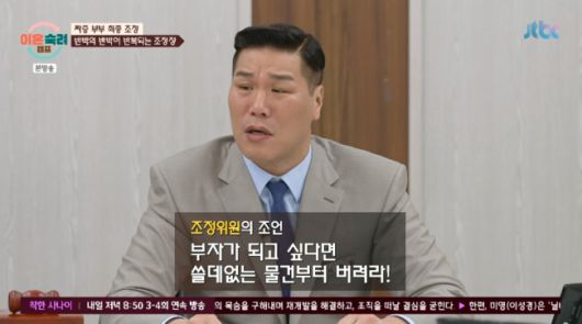 결국 서장훈은 남편에게 “싹 다 갖다 버려라. 집에 갖고 들어오지 말고”라고 잔소리를 했다. 특히 그는 “중요한 팁 알려드리겠다. 부자가 되고 싶잖아요? 그런 쓸데 없는 거 사면 부자가 안 된다. 쓸데없는 꾸역꾸역 넣으면 뭐하냐. 하나도 쓰지 않는 거를. 답답하다”라고 조언했다.