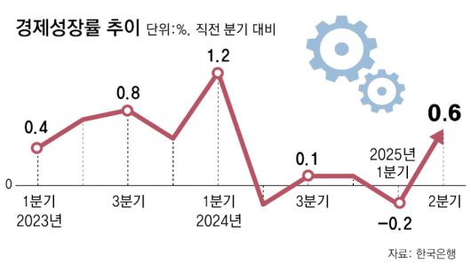 올해 2분기(4∼6월) 한국 경제가 1분기(1∼3월) ‘역성장 쇼크’를 딛고 반등했다. 수출과 소비가 살아나면서 당초 전망치보다 소폭 더 성장했다. 올해 연간 경제성장률이 1%를 넘어설지 여부는 향후 미국과의 관세 협상에 달렸다는 평가가 나온다.