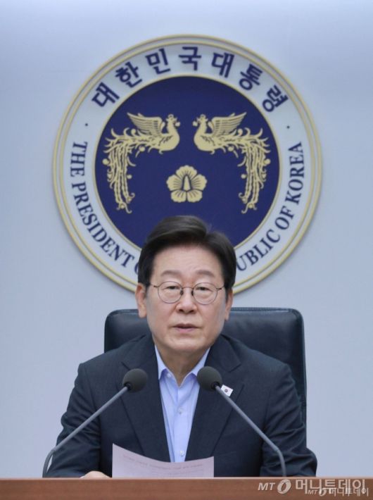 [서울=뉴시스] 고범준 기자 = 이재명 대통령이 24일 서울 용산 대통령실 청사에서 열린 제5차 수석보좌관회의에서 발언하고 있다. 2025.07.24. bjko@newsis.com /사진=고범준 |