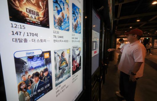 24일 서울 시내 한 영화관을 찾은 시민이 키오스크로 예매를 하고 있다. 정부는 내수 진작을 통한 민생 회복과 영화 산업 활성화를 위해 영화 관람료 6000원을 할인해 주는 쿠폰 450만장을 25일 오전 10시부터 선착순 배포한다. CGV·롯데시네마·메가박스 등 주요 영화관 홈페이지와 현장에서 1인당 2장까지 받을 수 있다. 통신사 할인을 제외하고 중복 할인이 가능하다.
