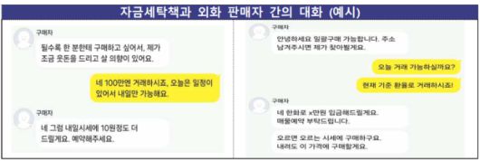 보이스피싱 자금세탁책과 외화 판매자 간 대화를 가상으로 재현한 상황. 금융감독원 제공 |