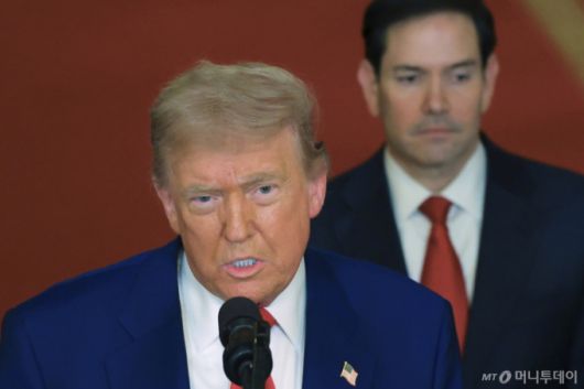도널드 트럼프 미국 대통령이 지난달 21일(현지시간) 백악관 이스트룸에서 미군의 이란 핵 시설 공습에 관해 발언하고 있다. 트럼프 대통령은 "이란의 핵 프로그램에 대한 선제적 조치로, 정밀 타격이 성공적으로 이뤄졌다"라고 밝혔다. 트럼프 대통령 뒤로 마코 루비오 미 국무부 장관이 보인다. / AP=뉴시스 |