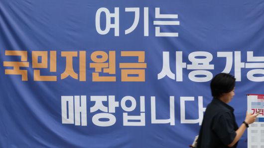 ▲ 서울 한 상점에 붙은 민생회복 소비쿠폰 사용처 안내문 모습