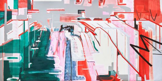 김세은, 잠수교, 캔버스에 수용성 유화와 시멘트 안료, 244 × 488 × 7 cm, 2020 |