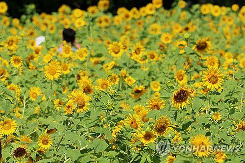 (제주=연합뉴스) 박지호 기자 = 폭염특보가 발효중인 25일 오전 제주시 애월읍 항몽유적지를 찾은 관광객이 해바라기밭에서 한여름 정취를 즐기고 있다. 2025.7.25