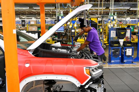 미국 테네시주 스프링힐에 있는 제너럴 모터스(GM) 생산 공정에서 작업자가 일을 하고 있다. [로이터] |
