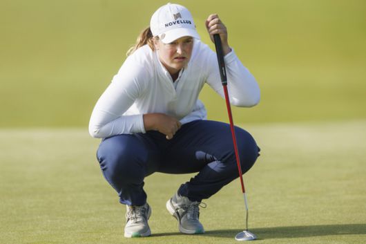 로티 워드가 25일 스코티시 여자오픈 1라운드에서 그린 경사를 체크하고 있다. AP=연합뉴스 |