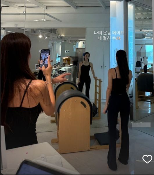 김성은과 박수진은 몸매가 드러나는 검정색 운동복을 입고 거울을 바라보면서 운동을 준비하고 있는 모습이었다. 김성은은 박수진의 모습을 사진으로 남기는 등 함께 보내는 일상을 소중히 하고 있었다.