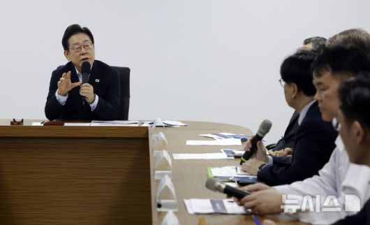 [시흥=뉴시스] 최동준 기자 = 이재명 대통령이 25일 경기 시흥시 SPC삼립 시화공장에서 열린 산업재해 근절 현장 노사간담회에서 SPC 임원들에게 사고경위와 근로자 노동 환경 등에 대해 질문하고 있다. 2025.07.25. photocdj@newsis.com