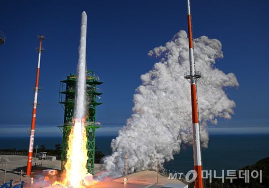 한국형발사체 누리호(KSLV-II)가 2022년 6월 전남 고흥 나로우주센터에서 발사되고 있다./사진=한국항공우주연구원 |