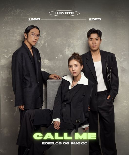 공개된 티저 이미지 속 코요태는 블랙 수트를 기반으로 한 클래식하면서도 세련된 스타일링으로 시선을 사로잡았다. 빽가는 긴 머리를 넘긴 슬릭 헤어에 무테 안경, 여유로운 핏의 재킷을 걸쳐 시크한 카리스마를 드러냈다. 중앙에 앉은 신지는 넓은 흰 칼라가 포인트인 블랙 슈트를 완벽하게 소화하며 도회적이고 당당한 매력을 발산했고, 김종민은 흰색 니트 톱에 체인 디테일의 재킷을 매치해 모던한 스타일링을 완성했다.