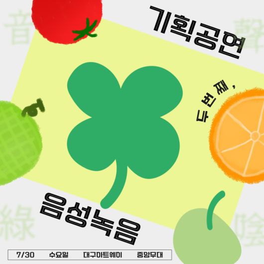 한편, 아트웨이 기획공연 '음성녹음'은 올해 처음으로 시도하는 기획사업으로, 시민들에게 수준 높은 공연 감상의 기회를 제공하기 위해 마련됐다. 기획공연은 6월부터 연말까지 매달 마지막 주 수요일에 아트웨이 중앙무대에서 펼쳐진다.
