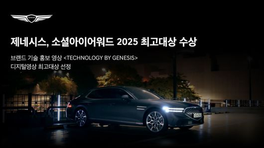 [SWTV 이일용 기자] 제네시스 브랜드(이하 제네시스)는 24일 서울 양재 엘타워 그랜드홀에서 열린 ‘소셜아이어워드(SOCIAL i-AWARD) 2025’에서 기술 홍보 영상 '테크놀로지 바이 제네시스(Technology by GENESIS)'로 ‘디지털영상 최고대상’을 수상했다고 25일 밝혔다.