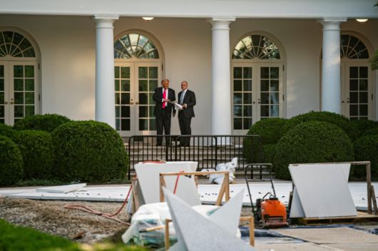 트럼프 대통령은 3월 폭스뉴스 인터뷰에서 “기자회견을 할 때 잔디가 젖으면 사람들이 넘어진다. 특히 하이힐을 신은 여성들이 걷기 힘들다”며 “정치 행사에 더 적합한 고급스러운 석재나 파티오가 필요하다”고 밝힌 바 있다.