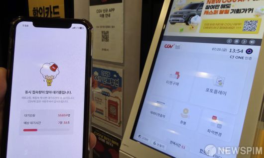 [서울=뉴스핌] 양윤모 기자= 문화체육관광부와 영화진흥위원회가 25일 오전 10시부터 영화관 입장권 6천원 할인권 총 450만 장을 배포한 가운데, 소비자가 신청 폭주로 주요 영화관 웹사이트와 앱 접속 마비를 알리는 휴대폰을 살펴보고 있다.할인권은 멀티플렉스 영화상영관인 CGV, 롯데시네마, 메가박스, 씨네큐 등의 누리집과 앱에서 발급받을 수 있다. 누리집과 앱을 통해 할인권을 발급할 수 없는 독립·예술영화전용관, 작은영화관, 실버영화관 등은 영화관 현장에서 선착순으로 할인을 제공한다. 2025.07.25 yym58@newspim.com