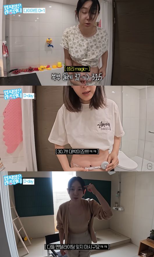 이지혜는 의지를 다지며 운동을 했고 다이어트 시작 5일 만에 51.7kg이 됐다. 허리도 30.7인치가 되면서 다이어트에 성공했다. /kangsj@osen.co.kr