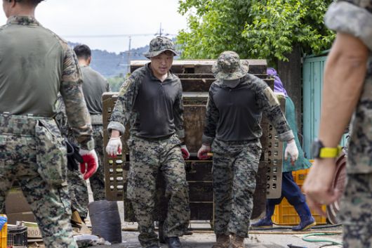 육군 특수전사령부 예하 특전대원들이 지난 24일 전남 담양 일대에서 수해 피해를 입은 민가의 복구를 돕고 있다. 사진 육군 |