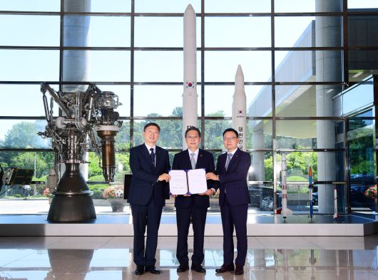 우주항공청은 25일 대전 한국항공우주연구원에서 윤영빈 우주청장이 참석한 가운데 항우연과 한화에어로스페이스 양 기관 대표가 기술 이전 계약서에 서명했다고 밝혔다.