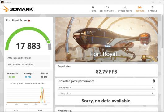레이 트레이싱 성능을 측정하는 포트로얄 벤치마크 결과이다. 그래픽 스코어 17,883점을 기록했다.
