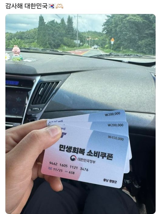 지난 22일 A씨는 자신의 SNS에 소비쿠폰 3장을 손에 쥐고 찍은 사진을 올리며 '감사해 대한민국'이라 적었습니다.