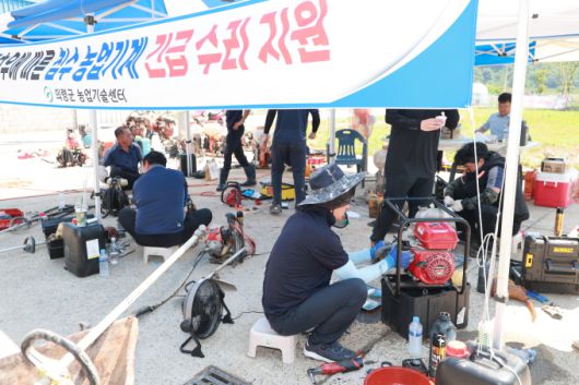 의령군농업기술센터 농기계지원팀은 수리 요원을 충원해 동력분무기, 관리기, 양수기, 경운기 등 멈춘 농기계의 작동 상태를 점검하고 수리했다.