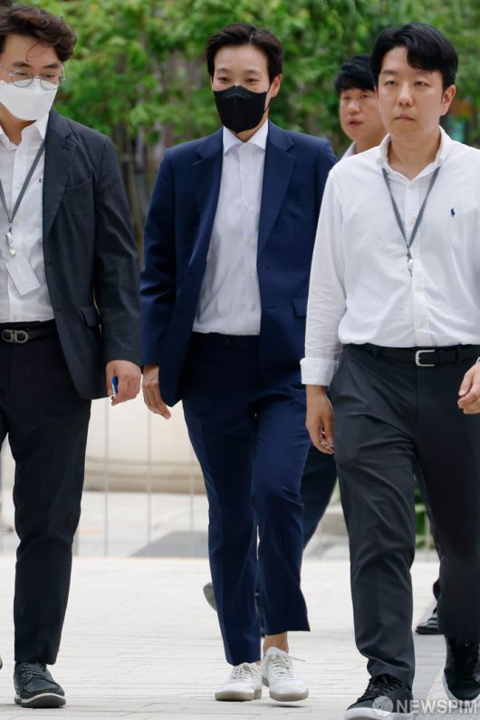 [서울=뉴스핌] 류기찬 인턴기자 = 정지원 전 대통령실 행정관이 25일 오후 서울 종로구 KT광화문빌딩 웨스트에 마련된 김건희 특검 사무실에 조사를 받기 위해 출석하고 있다. 2025.07.25 ryuchan0925@newspim.com