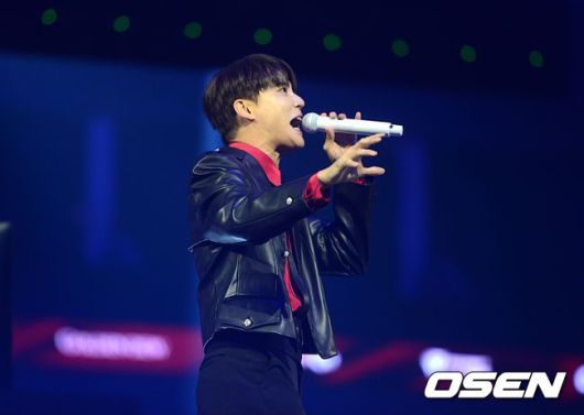 레전드 그룹 3라운드 T1과 젠지의 경기에 앞서 뮤지컬 배우 김준수가 오프닝 세리머니에 니서고 있다. / scrapper@osenco.kr