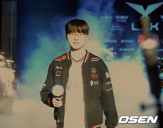 [OSEN=영종도(인천), 고용준 기자] 25일 오후 인천 영종도 인스파이어 아레나에서 ‘2025 LOL 챔피언스 코리아(LCK)’ 로드쇼 T1 홈그라운드 1일차 일정이 진행됐다. 레전드 그룹 3라운드 T1과 젠지의 경기에 앞서 홈팀 T1 선수들이 입장하고 있다. T1 간판 선수 ‘페이커’ 이상혁이 경기장에 들어오고 있다. / scrapper@osen.co.kr