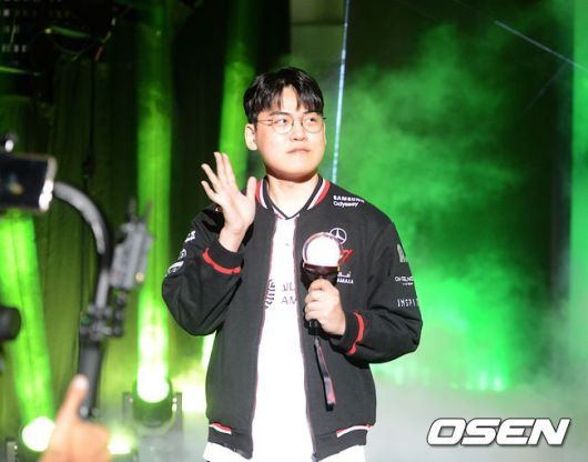 [OSEN=영종도(인천), 고용준 기자] 25일 오후 인천 영종도 인스파이어 아레나에서 ‘2025 LOL 챔피언스 코리아(LCK)’ 로드쇼 T1 홈그라운드 1일차 일정이 진행됐다. 레전드 그룹 3라운드 T1과 젠지의 경기에 앞서 홈팀 T1 선수들이 입장하고 있다. T1 원딜 ‘구마유시’ 이민형이 손을 흔들어 팬 들에게 인사하고 있다. / scrapper@osen.co.kr