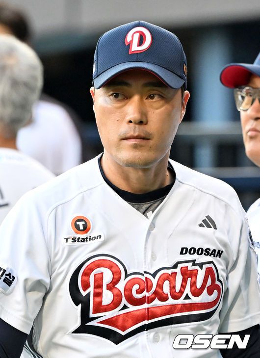 [OSEN=잠실, 민경훈 기자] 25일 오후 서울 잠실야구장에서 2025 신한 SOL Bank KBO리그 두산 베어스와 LG 트윈스의 경기가 열렸다. 이날 두산은 콜어빈, LG는 에르난데스를 선발로 내세웠다. 경기 시작 전 두산 조성환 감독 대행이 그라운드로 나오고 있다. 2025.07.25 / rumi@osen.co.kr