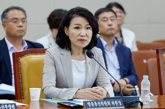 이진숙 방송통신위원장이 서울 여의도 국회에서 열린 제427회국회(임시회) 과학기술정보방송통신위원회 제1차 전체회의에서 위원장 질의에 답하고 있다. 뉴스1 |