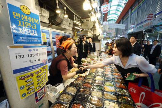 김혜경 여사가 25일 전통시장을 찾아 민생회복 소비쿠폰을 사용했다. 이번 주부터 전 국민 대상으로 발급 신청이 시작된 소비쿠폰 사용을 독려하기 위한 차원이다. 전날 경기 가평 수해 현장에서 복구 지원 등 봉사활동을 한 데 이은 내조 행보다.