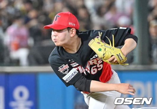 [OSEN=부산, 이석우 기자] 25일 부산 사직야구장에서 2025 신한 SOL 뱅크 KBO 리그 롯데 자이언츠와 KIA 타이거즈의 경기가 열렸다. 홈팀 롯데는 데이비슨이, 방문팀 KIA는 김건국이 선발 출전했다. KIA 타이거즈 성영탁이 역투하고 있다. 2025.07.25 / foto0307@osen.co.kr