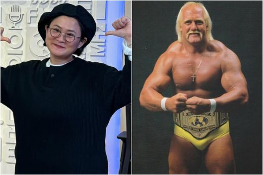 개그우먼 김신영(왼), 미국의 유명 프로레슬러 故 헐크 호건. |