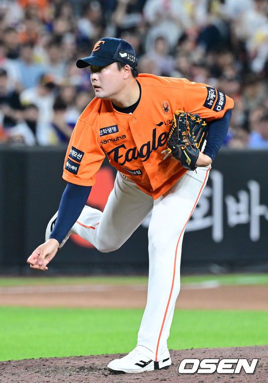 [OSEN=대전, 최규한 기자] 25일 대전 한화생명볼파크에서 ‘2025 신한 SOL Bank KBO리그’ 한화 이글스와 SSG 랜더스의 경기가 열렸다. 홈팀 한화는 라이언 와이스, 방문팀 SSG는 드류 앤더슨을 선발로 내세웠다. 8회초 마운드에 오른 한화 한승혁이 힘차게 공을 뿌리고 있다. 2025.07.25 / dreamer@osen.co.kr