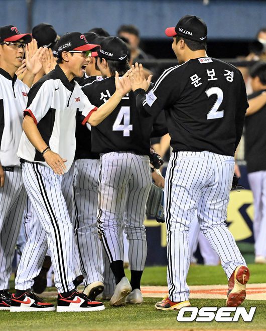 경기를 마치고 LG 염경엽 감독이 선수들과 하이파이브를 하며 기뻐하고 있다. 2025.07.25 / rumi@osen.co.kr