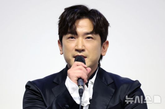 [서울=뉴시스] 박진희 기자 = 연극 '레미제라블' 출연 배우 이민우(마리우스 역)가 30일 서울 강남구 더샵갤러리에서 제작발표회를 하고 있다. 2024.10.30. pak7130@newsis.com |