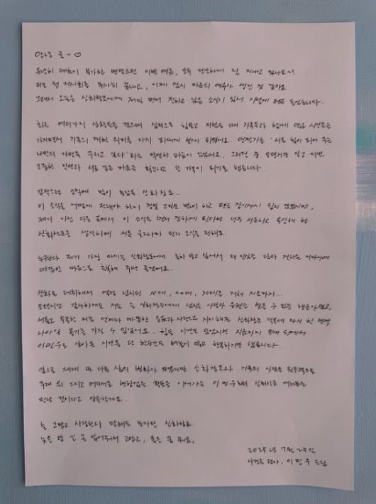이민우는 25일 개인 인스타그램을 통해 자필 편지를 공개했다. "신화창조에게 제일 먼저 전하고 싶은 소식이 있어 펜을 들었다"고 말문을 열었다.